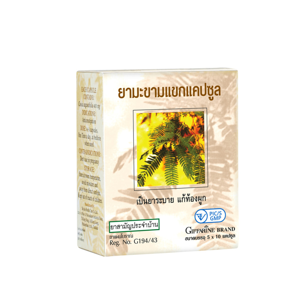 ส่วนประกอบสำคัญใน 1 แคปซูลประกอบด้วย : ผงใบมะขามแขก 400 มก. สรรพคุณ : เป็นยาระบาย แก้ท้องผูก ข้อควรระวัง : สตรีมีครรภ์ห้ามรับประทาน การเก็บรักษา : เก็บไว้ในที่เย็น